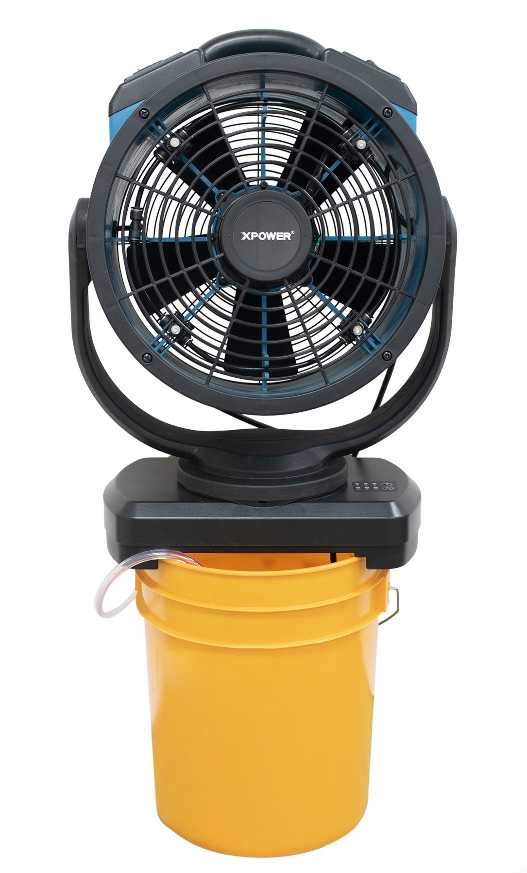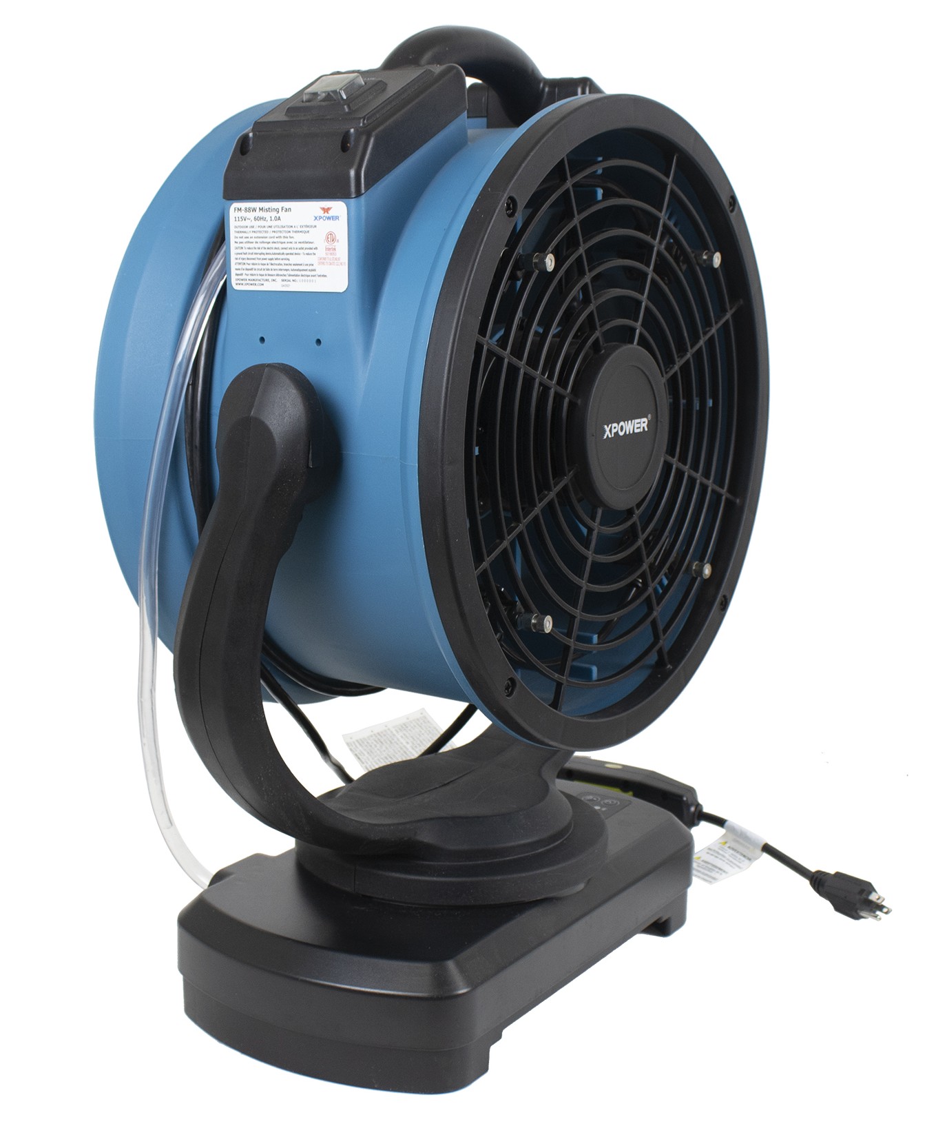 Lernen Sie den XPOWER FM-88W kennen, jetzt mit Oszillation für maximale Abdeckung und Kühlung bei allen Outdoor-Events. Dank der integrierten Wasserpumpe ist kein Anschluss an einen Gartenschlauch mehr erforderlich. Dieses XPOWER FM-88W wird mit dem mobilen Wassertank WT-90 geliefert. Der FM-88W bietet eine wirklich mobile Befeuchtungsfunktion mit integrierter GFCI-Schutzschaltung für höchste Sicherheit. Perfekt für Terrassen, Gartenpartys, Sportveranstaltungen, Poolbereiche oder sogar für den Einsatz in Gewächshäusern. Robust und zugleich stilvoll, sorgt dieser Ventilator für angenehme Kühlung und kann die Umgebungstemperatur um bis zu 14 °C senken. Wird die Wasserzufuhr getrennt, liefert der FM-88W eine extrem energieeffiziente Belüftung (nur 1 Ampere) mit einem starken Luftstrom von 2450 m3/h für eine optimale Luftzirkulation im Innenbereich.